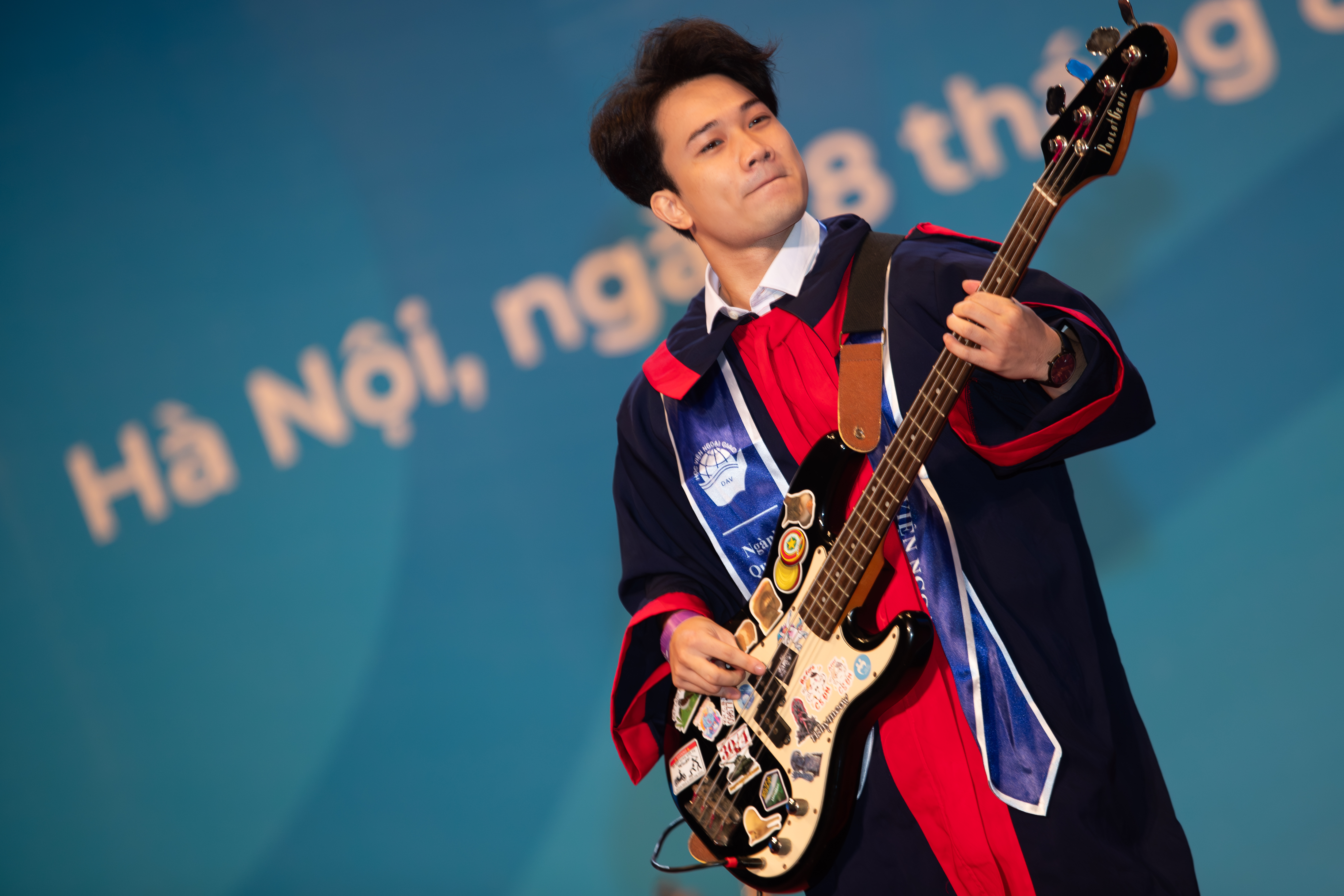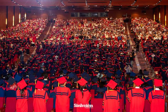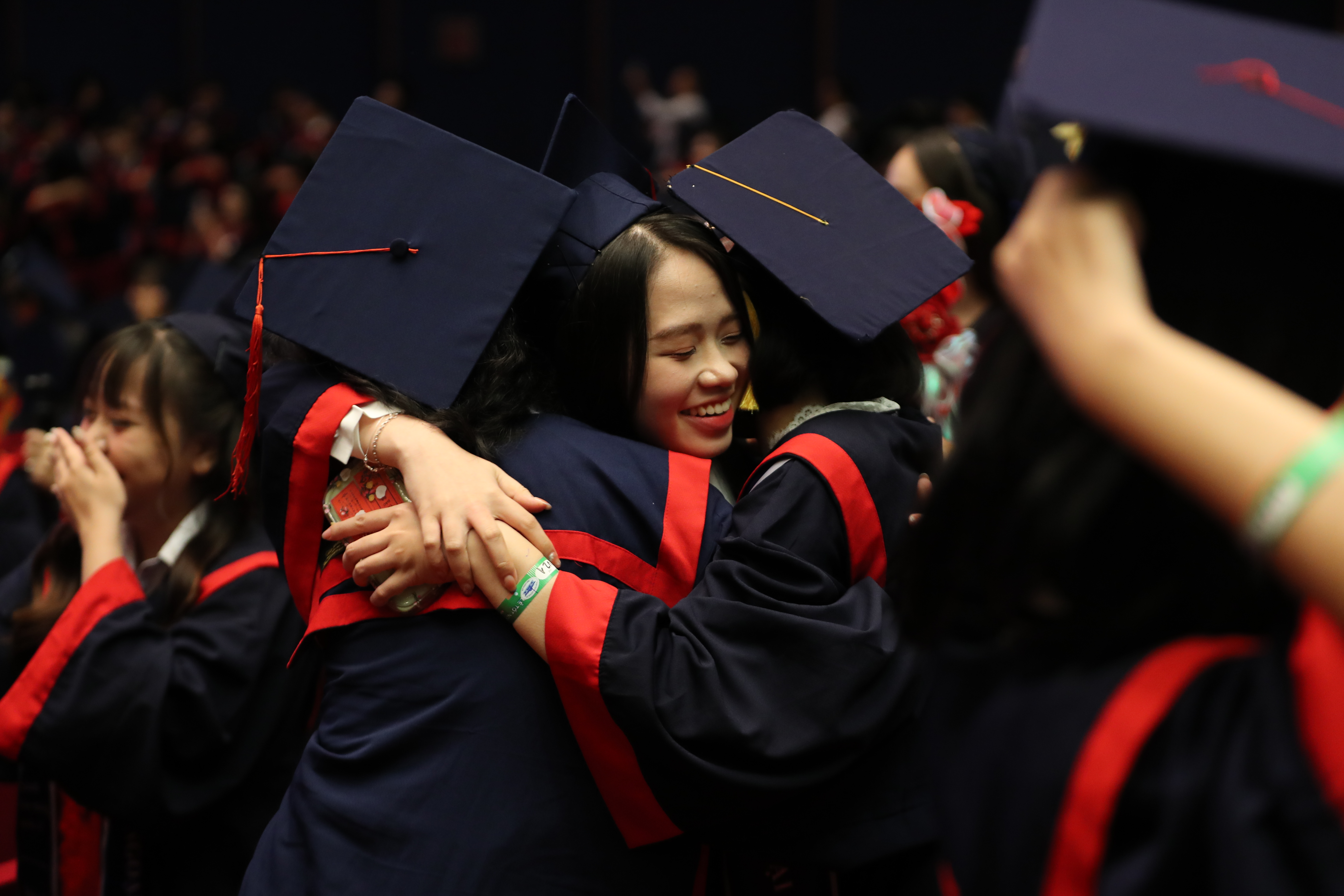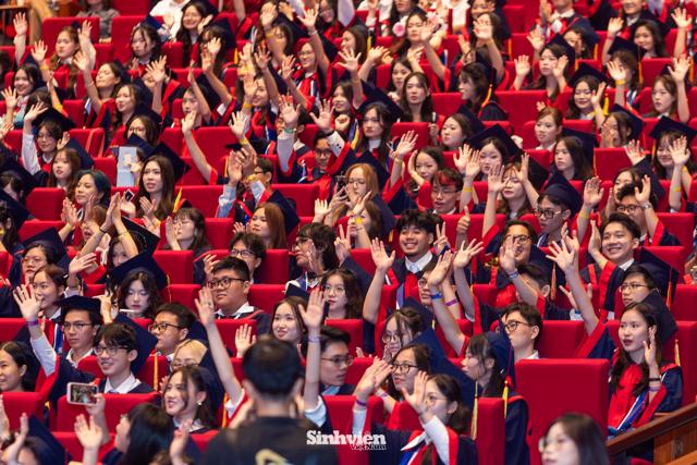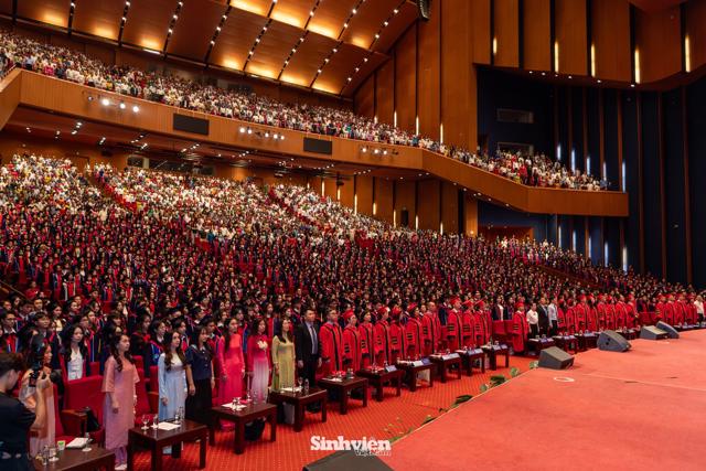 Buổi lễ chứng kiến những giây phút lắng lại khi toàn thể các tân cử nhân đứng dậy, đặt tay lên ngực, hướng ánh mắt về thầy cô và cha mẹ để bày tỏ lòng biết ơn, rồi trao những cái ôm ấm áp với bạn bè như một lời tạm biệt đầy cảm xúc với bốn năm tuổi thanh xuân.