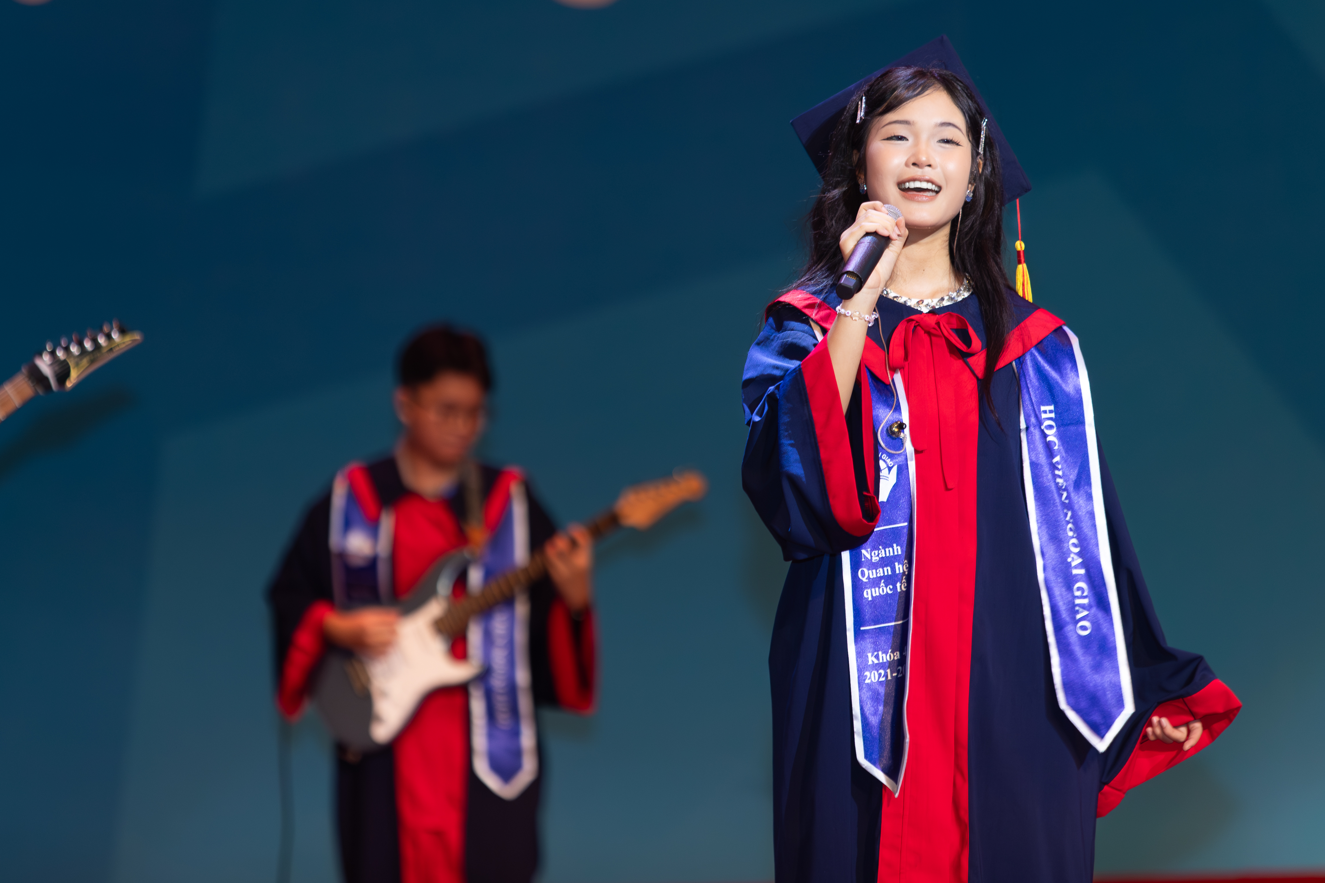 Những tiết mục văn nghệ mang âm hưởng chia tay vừa rộn rã, vừa da diết, cùng hình ảnh chú gấu bông Capybara - biểu tượng của sự thân thiện, được ví như “Bộ trưởng Bộ Ngoại giao” của thế giới động vật được chọn làm quà tặng cho các bạn sinh viên có thành tích học tập xuất sắc, đã trở thành những điểm nhấn đáng nhớ, mang đến nụ cười xen lẫn những giọt nước mắt xúc động của các tân cử nhân. Chia tay thời sinh viên, các bạn sẽ bước vào một chặng đường đời mới, có thể sẽ có nhiều thử thách nhưng cũng sẽ có nhiều trải nghiệm mới đang đón đợi.