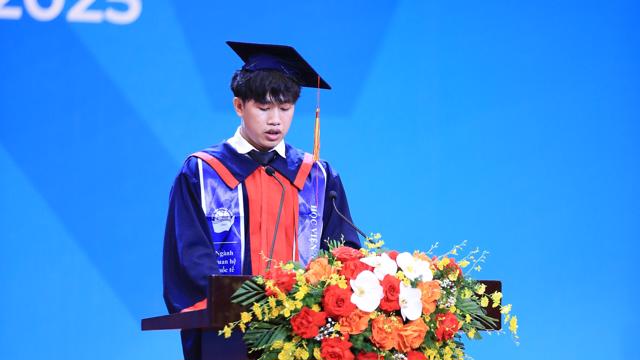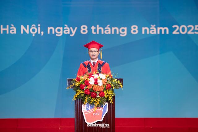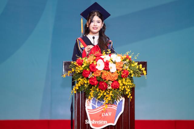 Đại diện cho các tân cử nhân, Nguyễn Nhật Anh – Thủ khóa 48, sinh viên ngành Truyền thông quốc tế, đã bày tỏ lòng biết ơn sâu sắc tới Ban Lãnh đạo Học viện, các thầy cô và gia đình. Nhật Anh tin rằng, với tri thức và kỹ năng được giảng dạy tại Học viện, nếu mỗi sinh viên biết phát huy những giá trị bản sắc của DAV – tinh thần dấn thân, khát vọng phụng sự, bản lĩnh trước thử thách và sự tử tế – ai cũng sẽ tìm thấy con đường thành công theo cách của riêng mình.