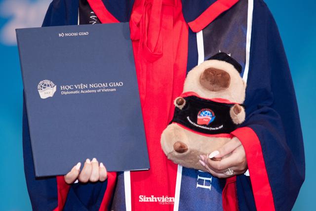 Phần trao bằng tốt nghiệp cho các tân cử nhân đã diễn ra trong không khí trang trọng và hân hoan. Từng bạn sinh viên được xướng tên đã có những giây phút thật tự hào khi trở thành nhân vật chính trên màn hình Led lớn trên sân khấu, được chụp những bức hình thật đẹp với thầy/cô Trưởng Khoa của mình, tay giơ cao tấm bằng tốt nghiệp tượng trưng của Học viện Ngoại giao được thiết kế trang nhã. Buổi lễ tốt nghiệp Khóa 48 khép lại với nhiều dư âm, đọng lại trong lòng người tham dự những hình ảnh và ấn tượng tốt đẹp - một kết thúc để mở đầu cho những hành trình mới của các DAVer-K48 với thật nhiều may mắn và thành công./.