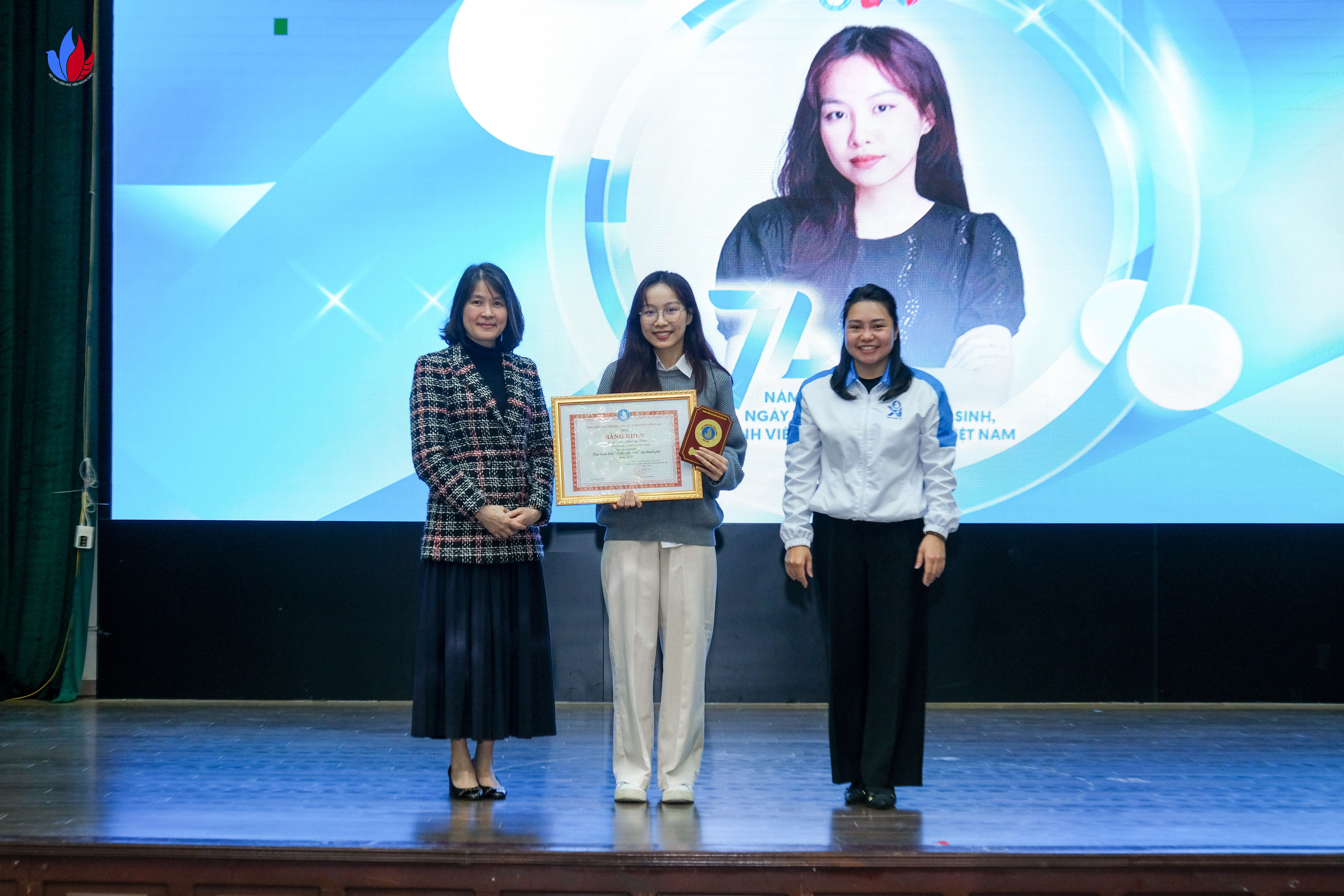 Bên cạnh đó, hành trình chinh phục Sinh viên 5 tốt đã khép lại với nhiều gương mặt nổi bật. Tiêu biểu trong số đó, đồng chí Nguyễn Quỳnh Anh - QHQT48C2 đã xuất sắc đạt danh hiệu Sinh viên 5 tốt cấp Trung ương - danh hiệu cao quý nhất trong phong trào SV5T.