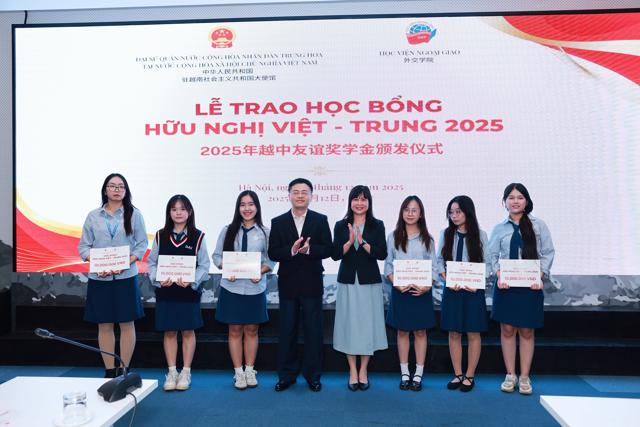 Tiếp đó, vào ngày 12/12/2025, bốn sinh viên ngành Ngôn ngữ Anh cũng đã được trao Học bổng Hữu nghị Việt – Trung, dành cho những sinh viên nỗ lực vươn lên trong học tập. Học bổng do Công sứ Đại sứ quán nước Cộng hòa Nhân dân Trung Hoa tại Việt Nam trao tặng, với sự chứng kiến của lãnh đạo Học viện cùng đại diện Đại sứ quán và các đơn vị liên quan.