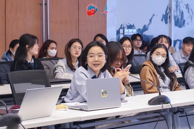 Phần trao đổi - hỏi đáp diễn ra sôi nổi, tạo cơ hội để các học viên trực tiếp đặt câu hỏi và chia sẻ quan điểm với Đại sứ về những tình huống đàm phán và hợp tác trong thực tiễn. Qua đó, buổi tọa đàm không chỉ giúp sinh viên tiếp cận gần hơn với kinh nghiệm của các nhà ngoại giao, mà còn khuyến khích tư duy chủ động và tinh thần học hỏi trong quá trình chuẩn bị cho con đường nghề nghiệp.