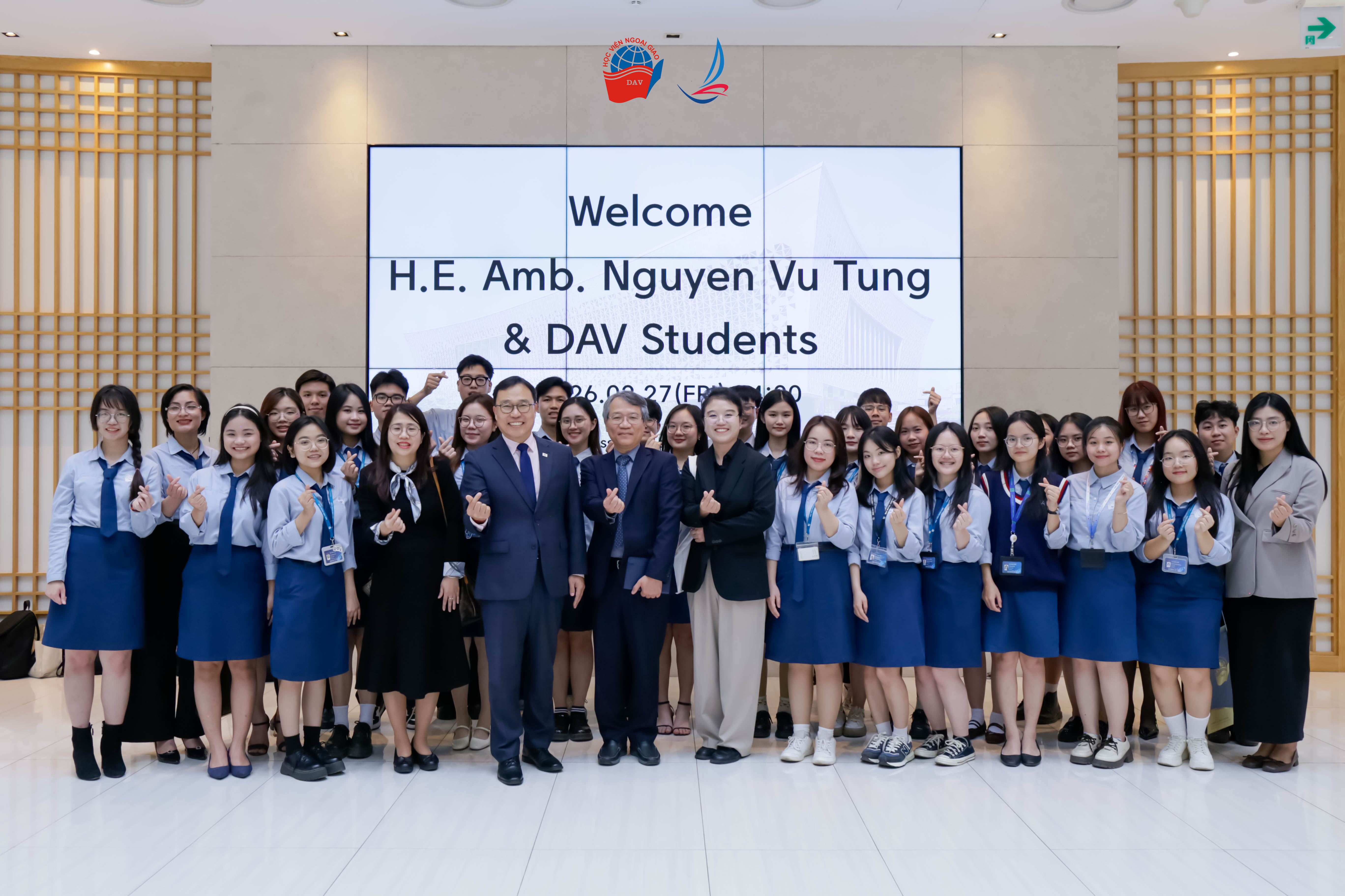 Ngày 27/02/2026, trong khuôn khổ Khóa học DAV Ambassadors’ Journey, Ban Đào tạo đại học và sau đại học đã tổ chức thành công chuyến thăm và làm việc tại Đại sứ quán Hàn Quốc tại Việt Nam. Hoạt động mang đến cơ hội để học viên tiếp cận thực tiễn ngoại giao, mở rộng kết nối học thuật, đồng thời góp phần củng cố quan hệ hợp tác tốt đẹp giữa Việt Nam và Hàn Quốc nói chung, cũng như giữa Học viện Ngoại giao và Đại sứ quán Hàn Quốc tại Việt Nam nói riêng.