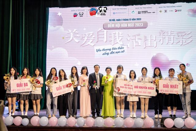 Tiếp nối sự kiện, Vòng chung kết cuộc thi “Đêm hội Hán ngữ 2023” với thông điệp “Yêu thương bản thân, hướng tới ánh sáng - 关爱自我,心向阳光” đã diễn ra vô cùng sôi nổi với sự tranh tài của bốn đội thi đã xuất sắc vượt qua vòng sơ khảo. Trải qua hai vòng thi: Vòng thi tài năng và Vòng thi hùng biện, cả bốn đội thi đều giành được những giải thưởng xứng đáng. Một lần nữa, BTC xin được vinh danh: