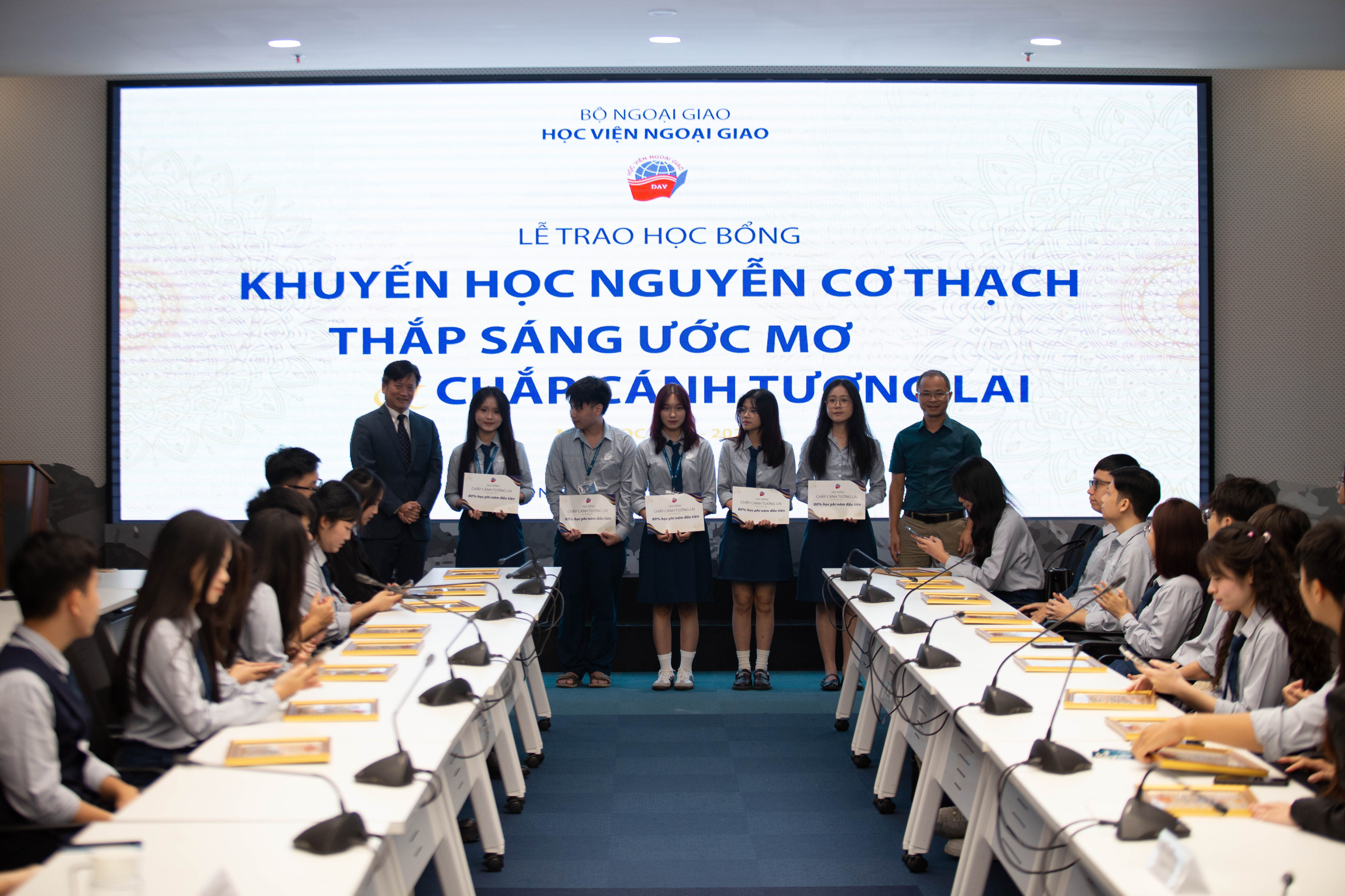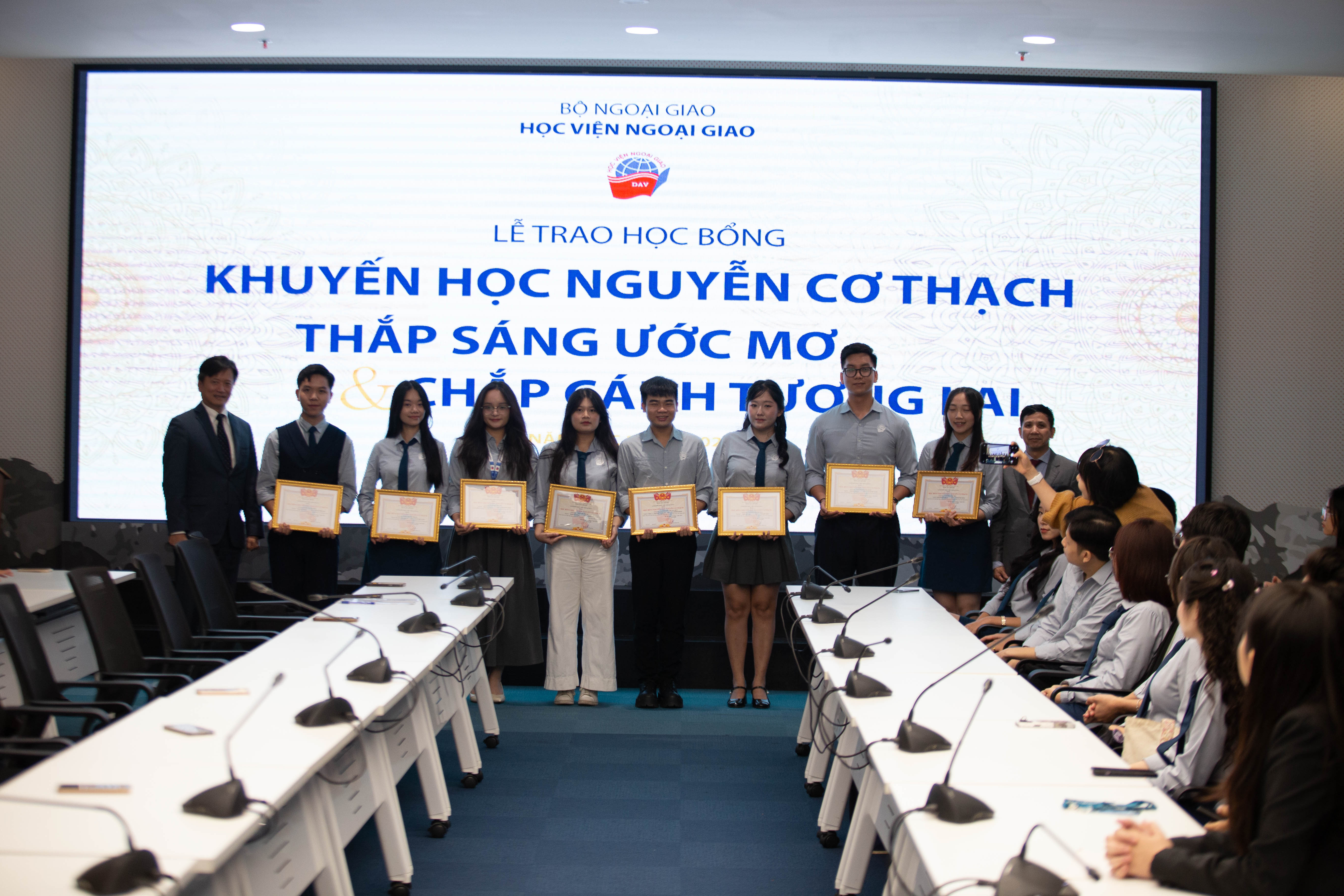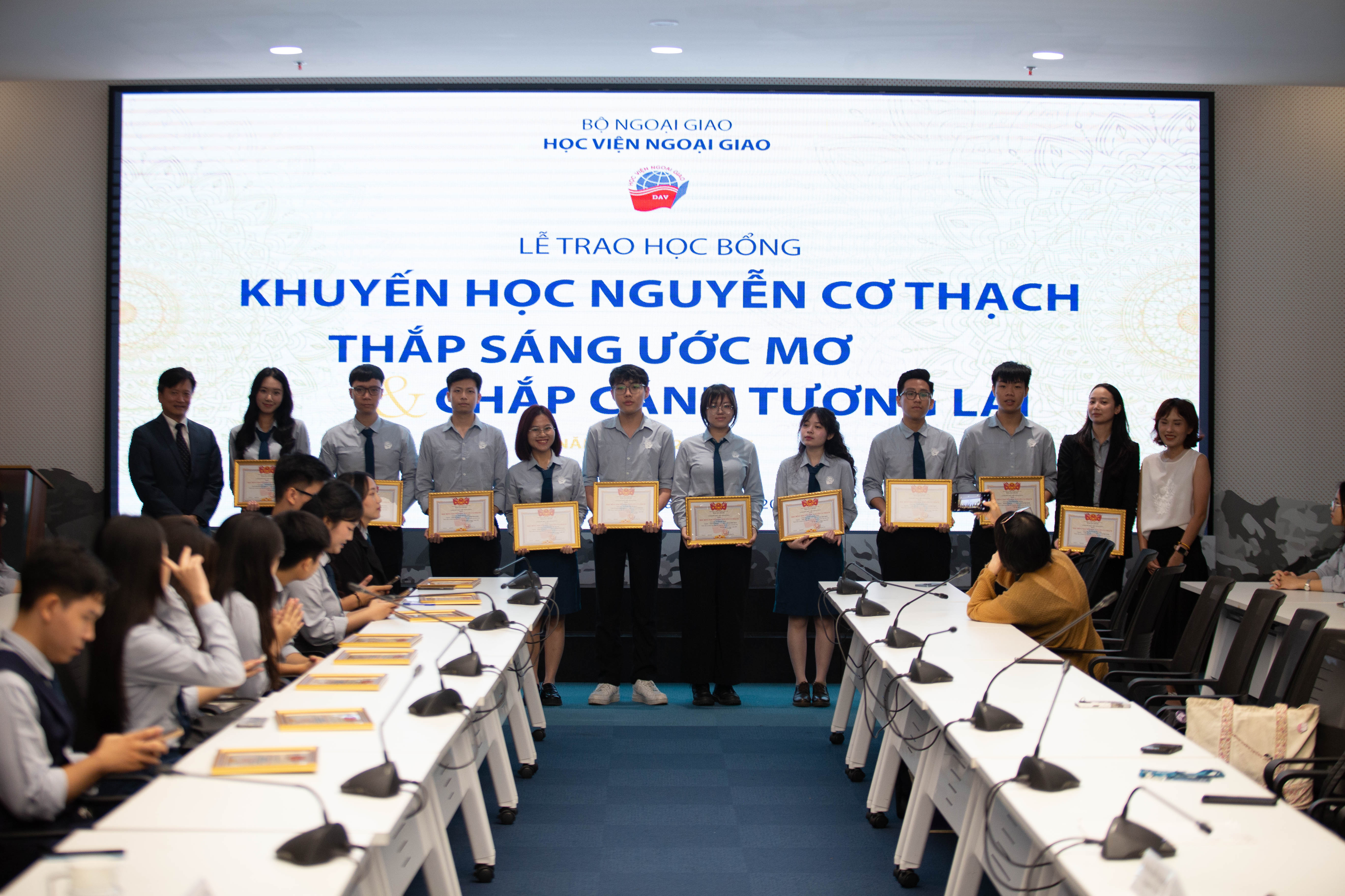 Lễ trao học bổng đã diễn ra thành công tốt đẹp trong không khí hân hoan và đầy cảm xúc. Mỗi suất học bổng là một câu chuyện về ý chí, niềm tin và động lực để sinh viên Ngoại giao tiếp tục tự tin tiến bước, bản lĩnh, kiên trì hơn trong hành trình phát triển bản thân và cống hiến những giá trị tích cực. Với nền tảng đó, Học viện Ngoại giao luôn sẽ luôn là nơi chắp cánh cho những khát vọng vươn xa, vì một thế hệ tri thức giàu trách nhiệm và tinh thần phụng sự./.