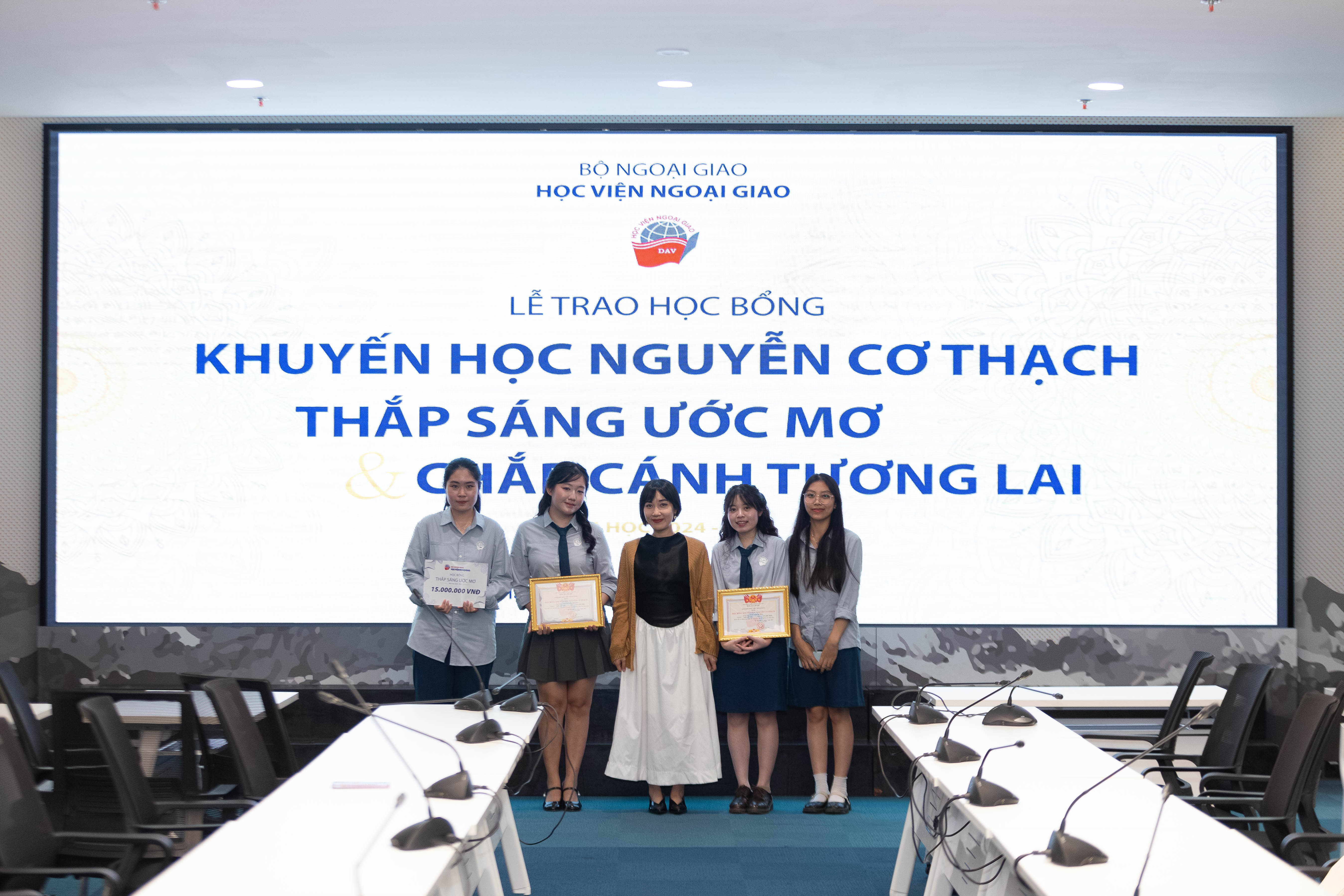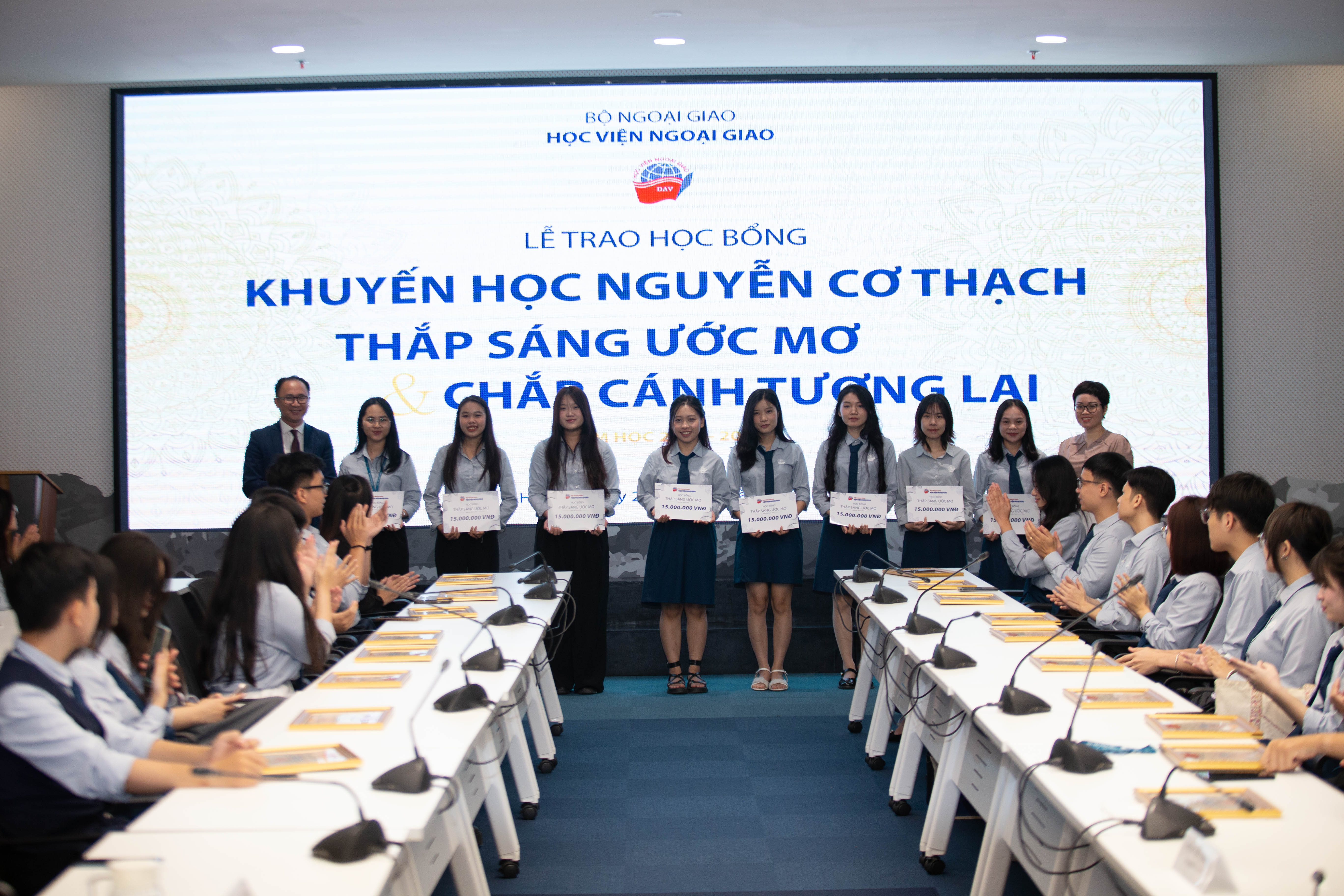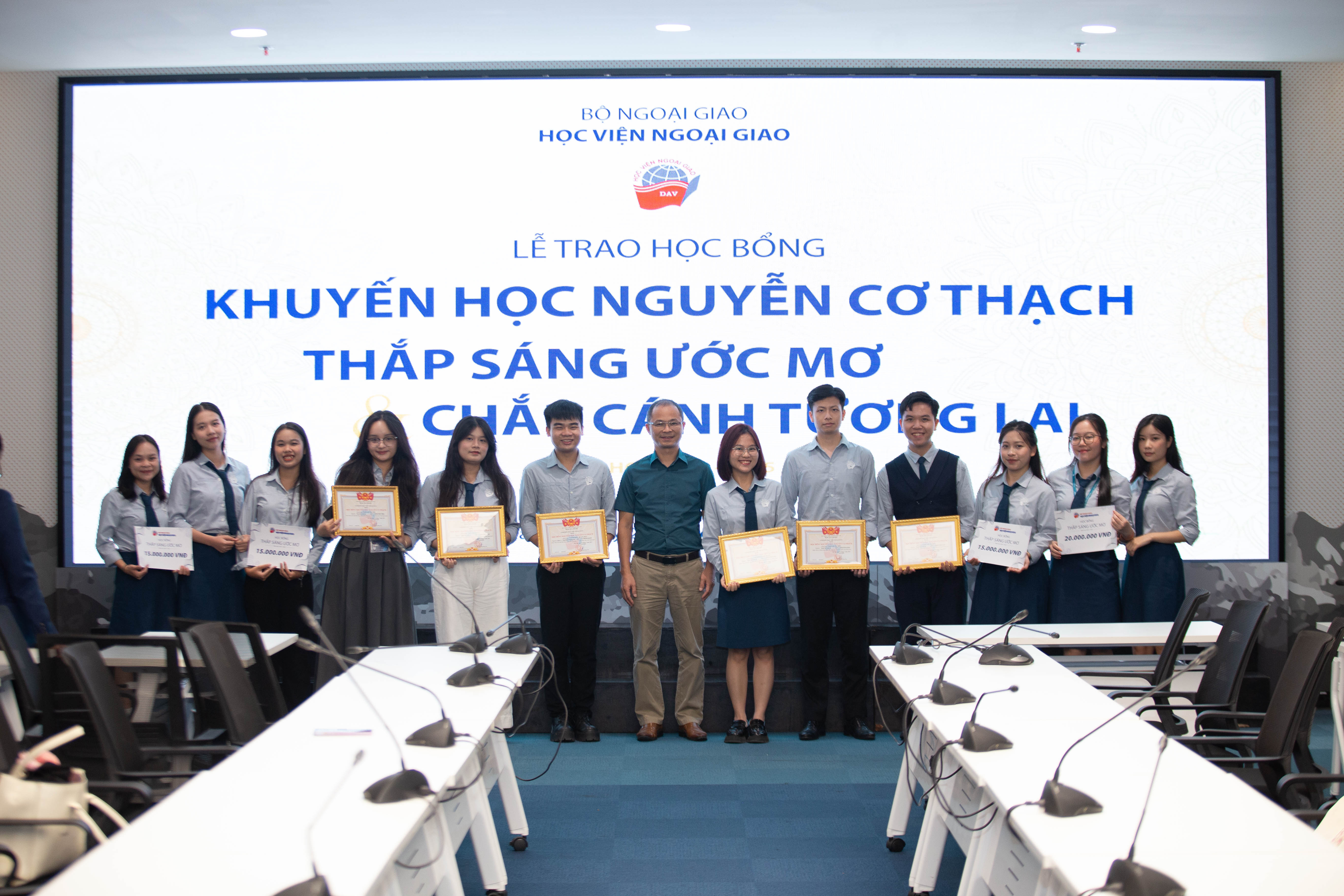 Lễ trao học bổng đã diễn ra thành công tốt đẹp trong không khí hân hoan và đầy cảm xúc. Mỗi suất học bổng là một câu chuyện về ý chí, niềm tin và động lực để sinh viên Ngoại giao tiếp tục tự tin tiến bước, bản lĩnh, kiên trì hơn trong hành trình phát triển bản thân và cống hiến những giá trị tích cực. Với nền tảng đó, Học viện Ngoại giao luôn sẽ luôn là nơi chắp cánh cho những khát vọng vươn xa, vì một thế hệ tri thức giàu trách nhiệm và tinh thần phụng sự./.