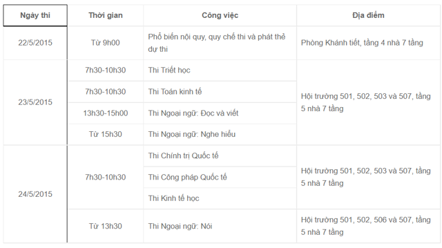 Lịch thi tuyển sinh Thạc sĩ đợt I năm 2015