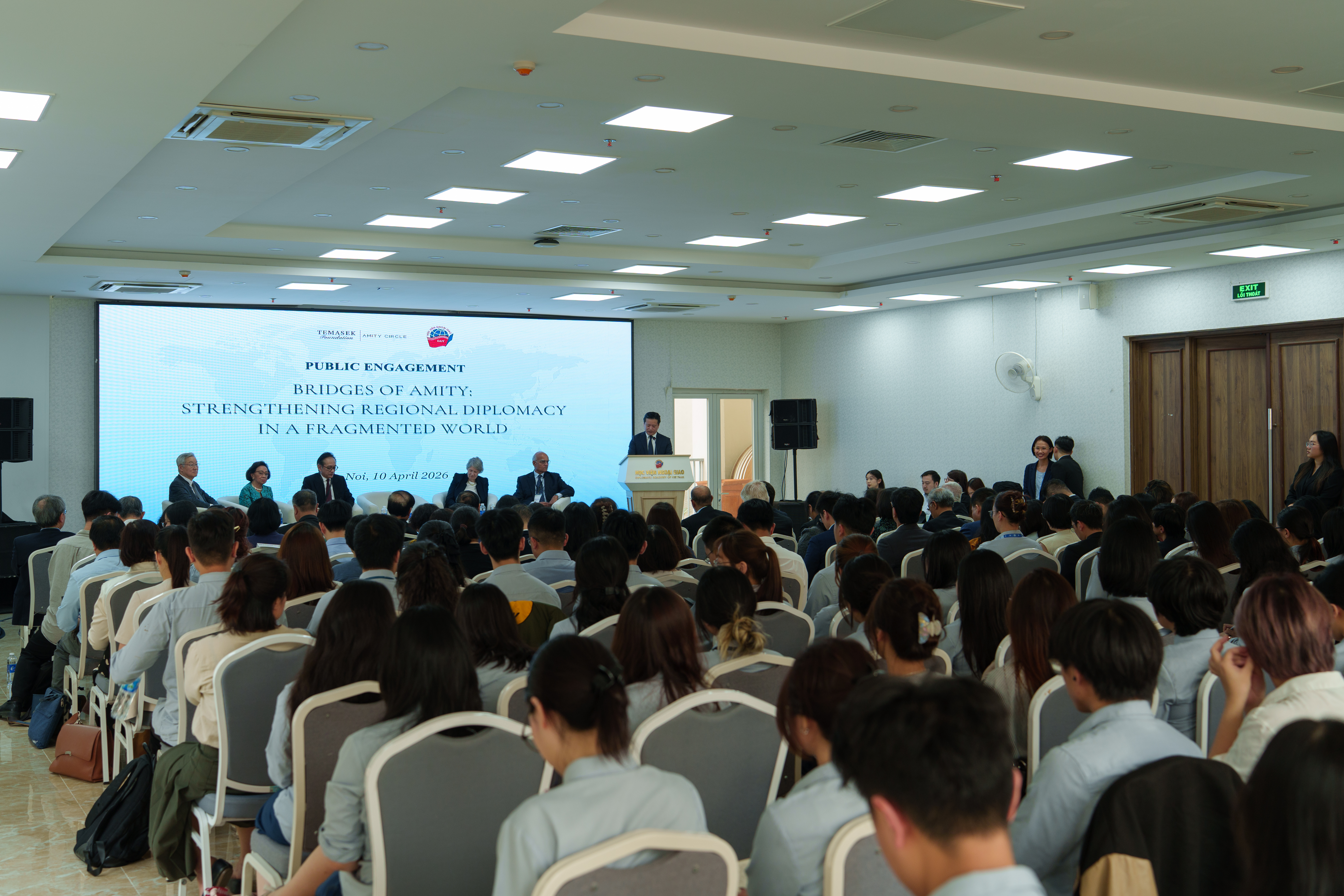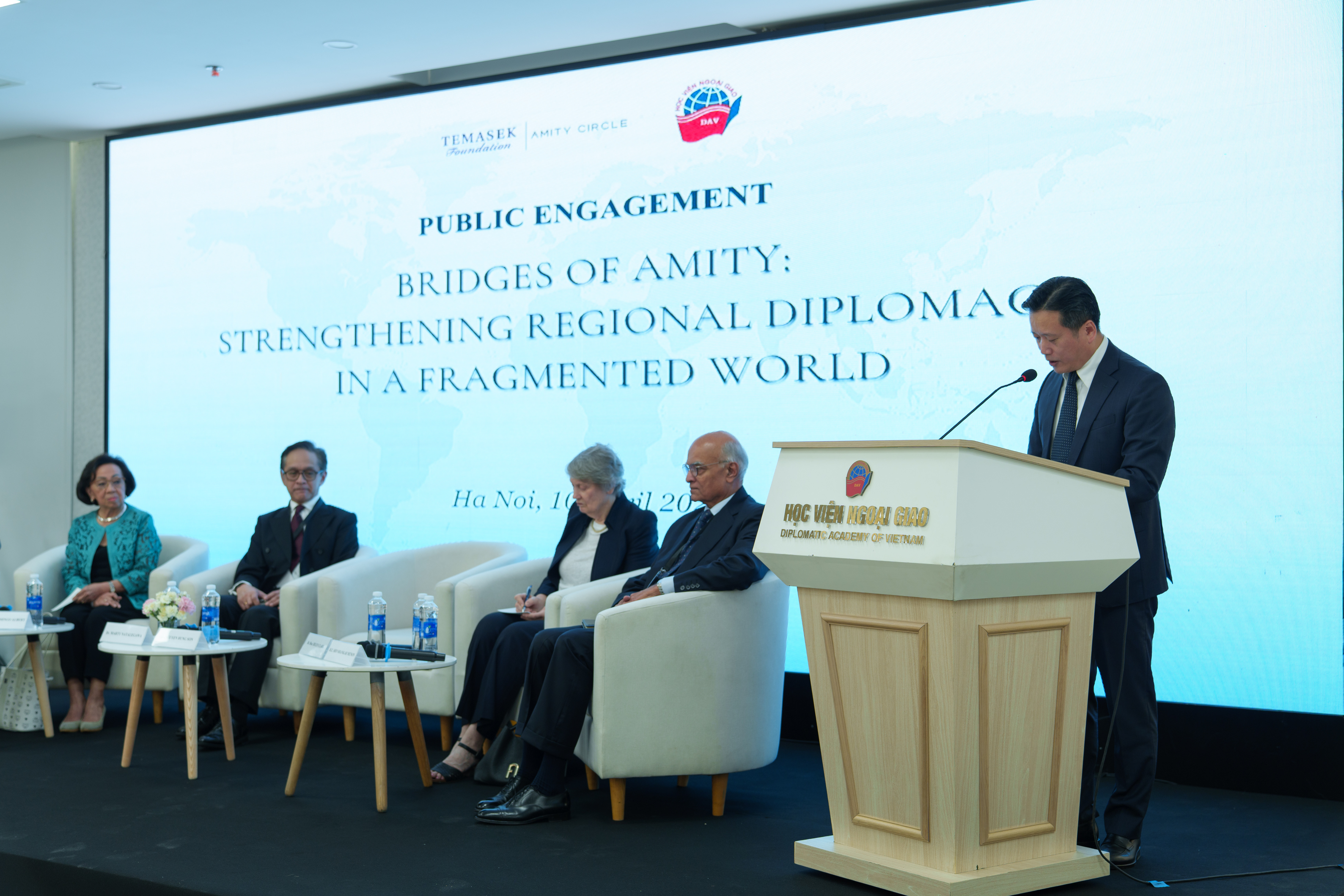 Chiều ngày 10/4/2026, Học viện Ngoại giao Việt Nam phối hợp cùng Mạng lưới Amity Circle và Quỹ Temasek (Singapore) tổ chức Phiên Giao lưu Công chúng với chủ đề “Bridges of Amity: Strengthening Regional Diplomacy in a Fragmented World” - Những nhịp cầu hữu nghị: Củng cố ngoại giao khu vực trong một thế giới phân mảnh.