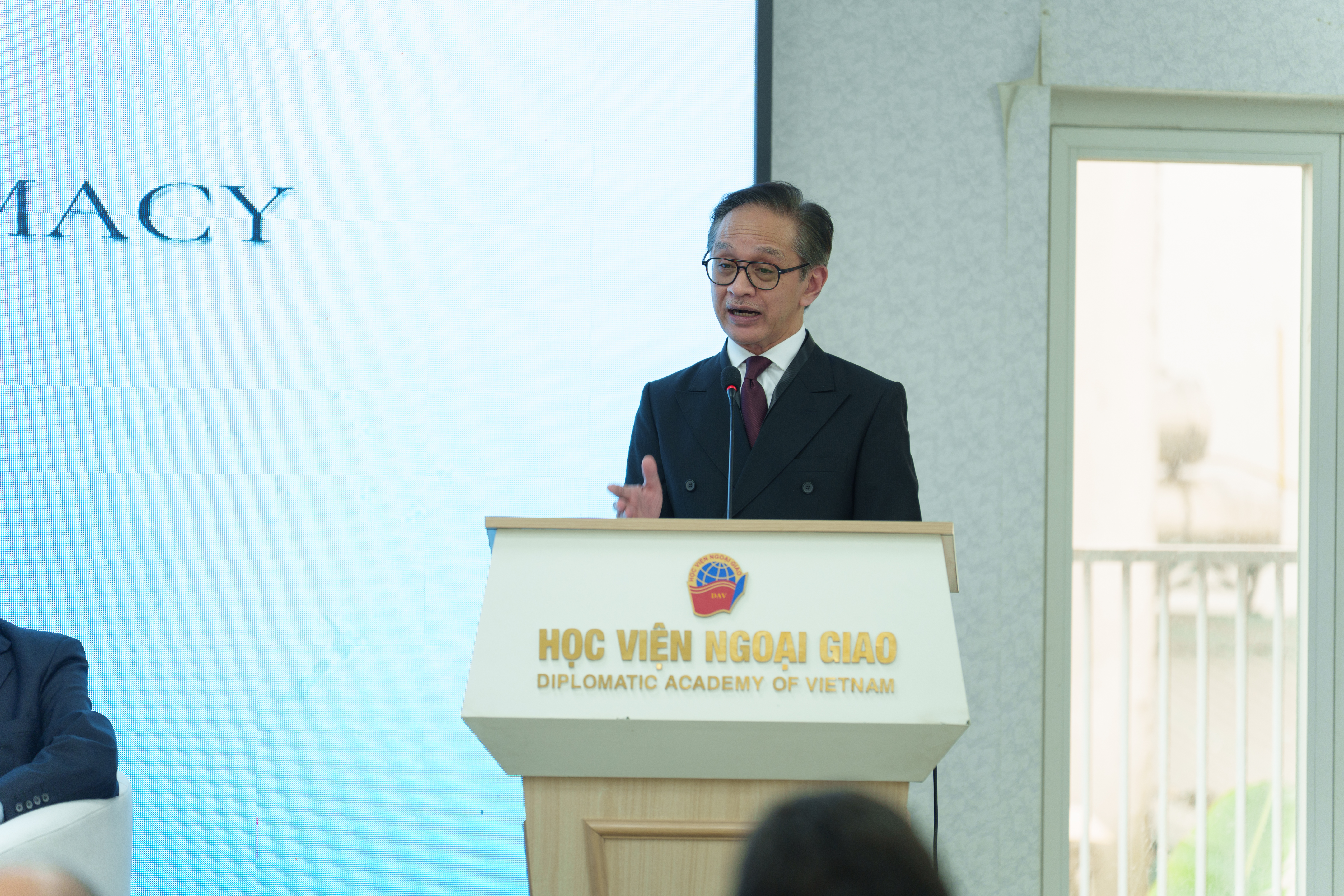 Bên cạnh đó, ông cũng chia sẻ một số góc nhìn về yêu cầu đối với hoạt động ngoại giao, cho rằng bên cạnh kiến thức chuyên môn, các nhà ngoại giao cần có khả năng đối thoại, linh hoạt trong cách tiếp cận và chú trọng tìm kiếm các điểm đồng.