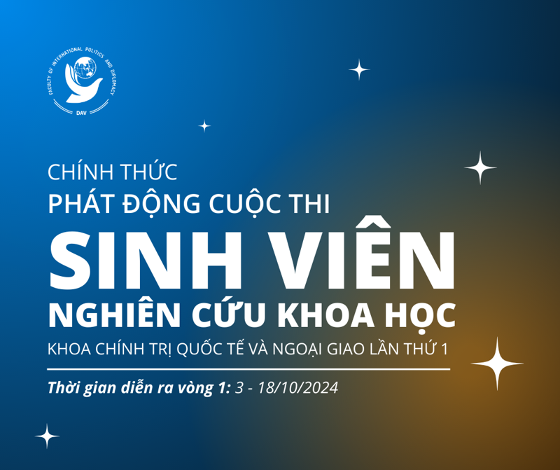 Nhằm khuyến khích và đẩy mạnh phong trào sinh viên nghiên cứu khoa học, tạo điều kiện cho sinh viên phát huy sự sáng tạo, khả năng vận dụng kiến thức đã học vào giải quyết những vấn đề thực tiễn, Khoa Chính trị quốc tế và Ngoại giao (FIPAD) chính thức phát động cuộc thi Sinh viên nghiên cứu khoa học (NCKH) trong khuôn khổ của Khoa.