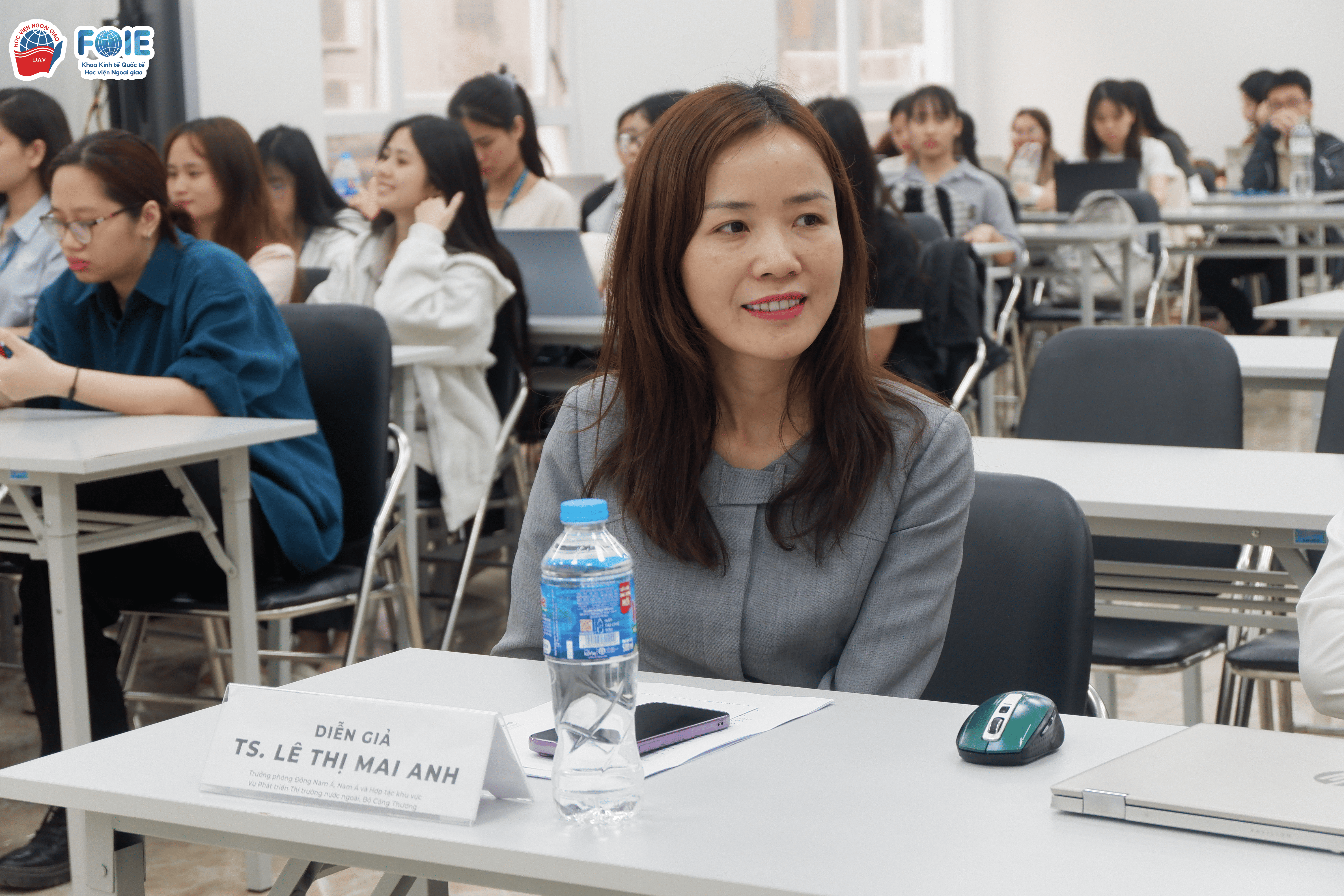 Xuyên suốt buổi tọa đàm, TS. Lê Thị Mai Anh đã mang đến góc nhìn toàn diện về tầm quan trọng của Đông Nam Á & Nam Á trong thương mại toàn cầu, vị thế của Việt Nam đang trong bức tranh kinh tế khu vực và vai trò của ngoại giao kinh tế trong phát triển thương mại quốc tế. TS. Lê Thị Mai Anh điểm qua về những cơ hội và thách thức cho doanh nghiệp Việt Nam trong thương mại khu vực, điển hình là tiềm năng phát triển của các nhóm ngành nông sản, công nghiệp chế biến, logistics, xuất khẩu dịch vụ cũng như các rào cản thương mại quốc tế từ chính sách bảo hộ và khác biệt văn hóa kinh doanh.
