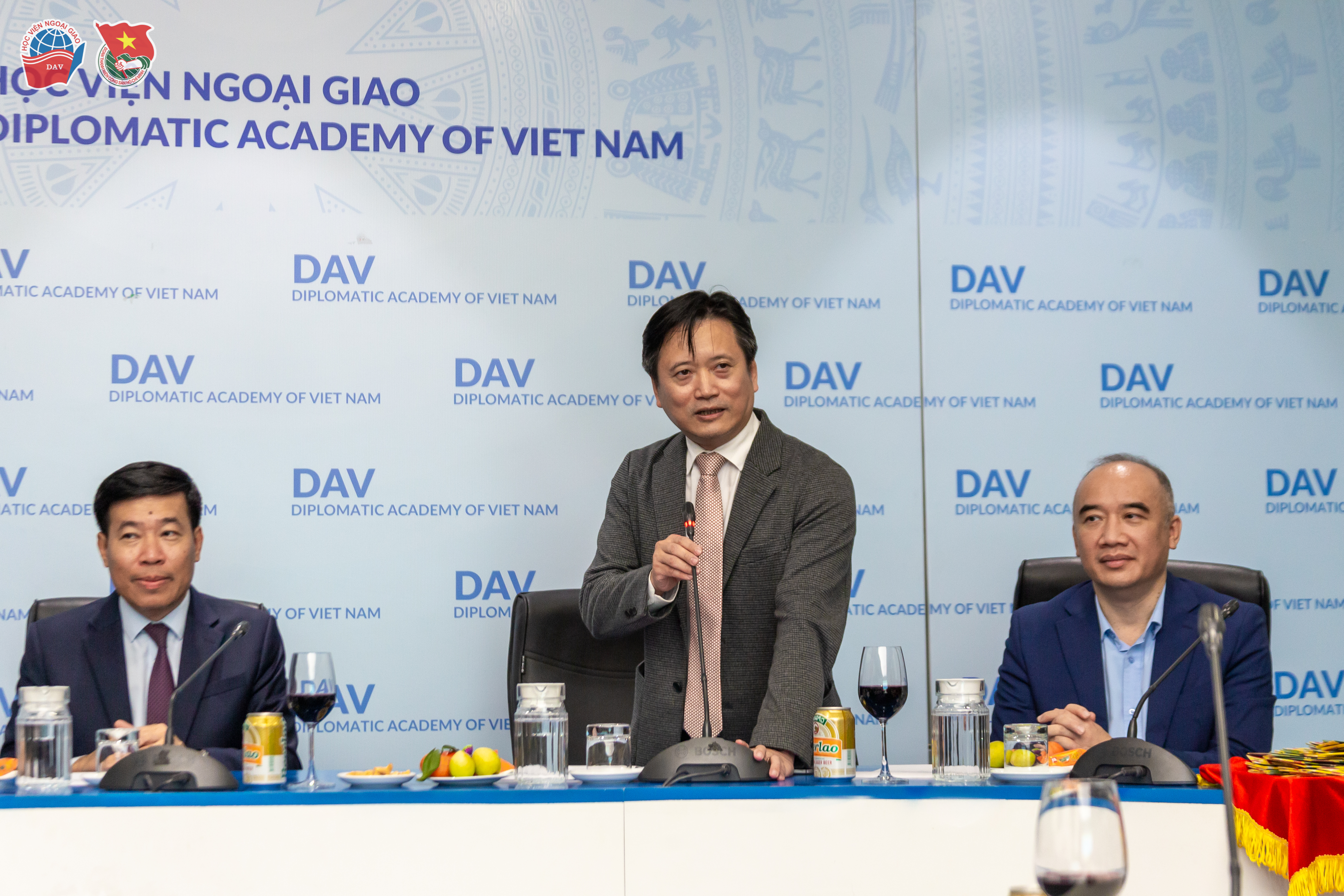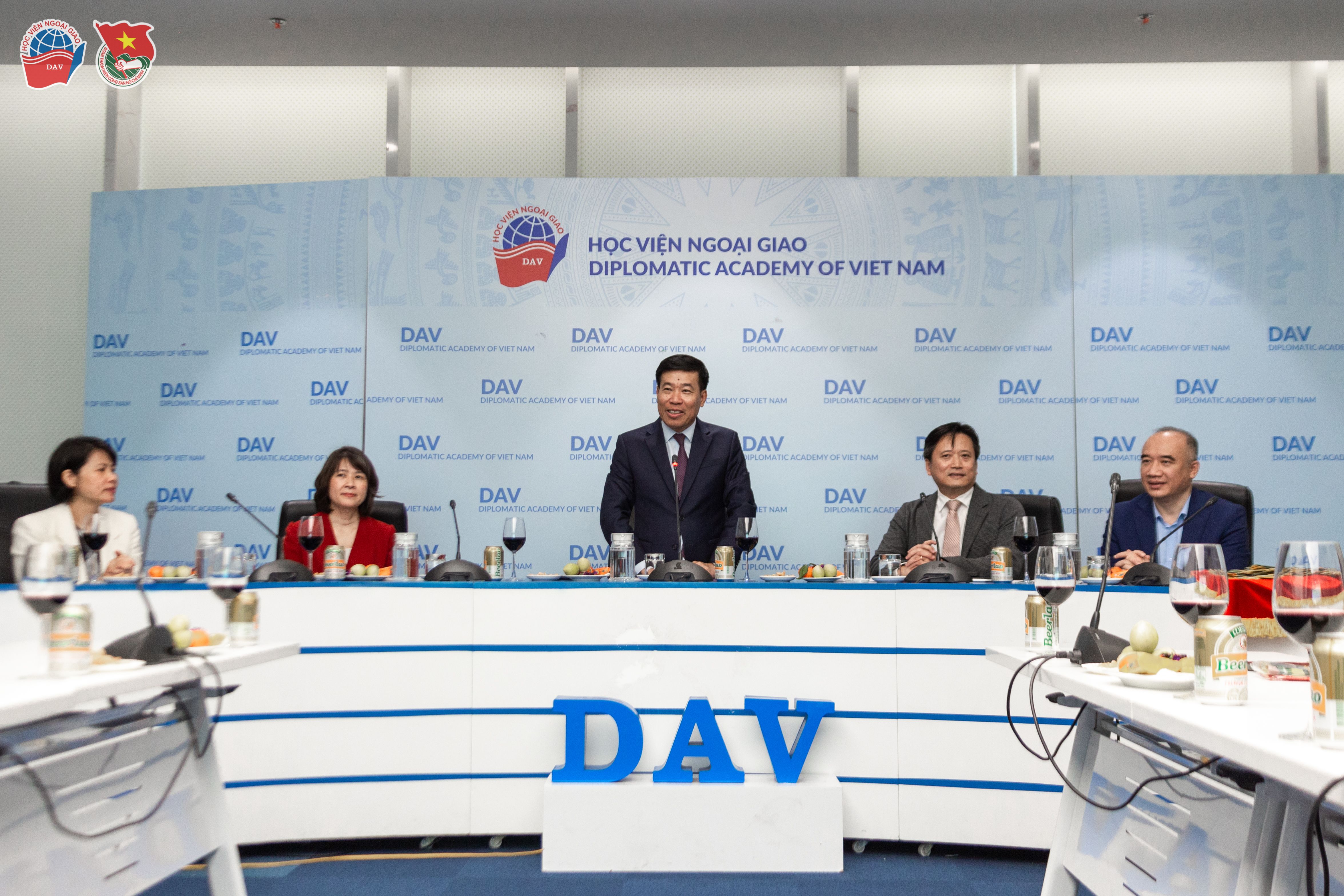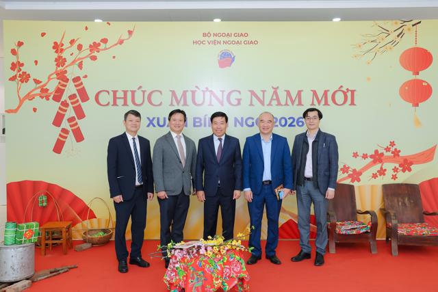 Ngày 23/2, tại Học viện Ngoại giao, lãnh đạo Bộ Ngoại giao đã gặp mặt, chúc Tết và giao nhiệm vụ công tác năm 2026 đối với cán bộ, viên chức, người lao động Học viện nhân dịp đầu Xuân Bính Ngọ 2026. Chương trình là dịp để lãnh đạo Bộ Ngoại giao và lãnh đạo Học viện gặp gỡ, định hướng nhiệm vụ trong tâm, khơi dậy khí thế thi đua và quyết tâm hoàn thành tốt các mục tiêu công tác trong năm 2026.