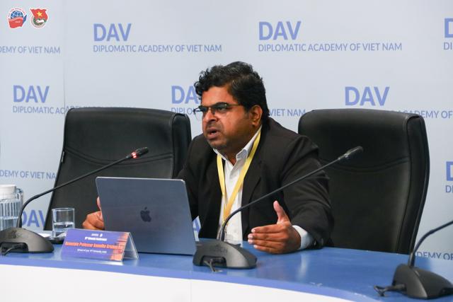 Tiếp nối tinh thần đó, phiên thứ hai của Hội thảo tập trung thảo luận những tác động pháp lý và đạo đức của trí tuệ nhân tạo (AI) trong xung đột vũ trang và quản trị toàn cầu. Các học giả thống nhất rằng, dù AI mang lại tiềm năng hỗ trợ nhân đạo, song vẫn tồn tại khoảng trống pháp lý và nguy cơ suy giảm trách nhiệm của con người trong việc tuân thủ Luật Nhân đạo Quốc tế. Ở góc nhìn rộng hơn, các nghiên cứu về chủ nghĩa thực dân kỹ thuật số chỉ ra sự bất bình đẳng giữa các quốc gia trong quyền kiểm soát dữ liệu và hạ tầng số; đồng thời, kêu gọi củng cố chủ quyền dữ liệu, bảo đảm công bằng và nhân đạo trong không gian kỹ thuật số toàn cầu.