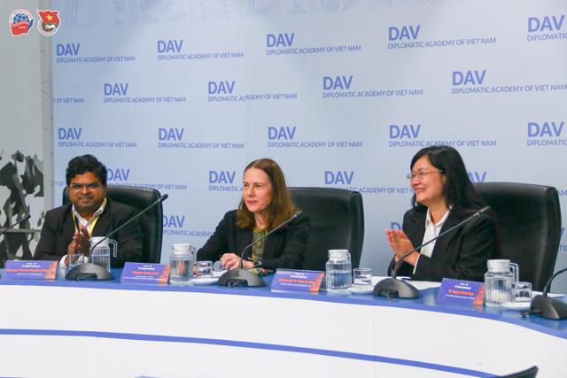 Sau mỗi phiên làm việc, Hội thảo đều dành thời gian cho phần thảo luận và hỏi - đáp, thu hút sự tham gia sôi nổi của các học giả, chuyên gia và sinh viên trong và ngoài nước. Nhiều câu hỏi chuyên sâu được đặt ra, tập trung vào việc vận dụng lý thuyết vào thực tiễn, giải quyết các thách thức pháp lý mới và định hình xu hướng phát triển của luật pháp quốc tế trong kỷ nguyên số. Các diễn giả trực tiếp trao đổi, làm rõ các vấn đề được quan tâm và chia sẻ thêm những góc nhìn học thuật đa chiều, qua đó góp phần làm phong phú nội dung các phiên làm việc và thể hiện tinh thần học thuật cởi mở, đối thoại, hợp tác.