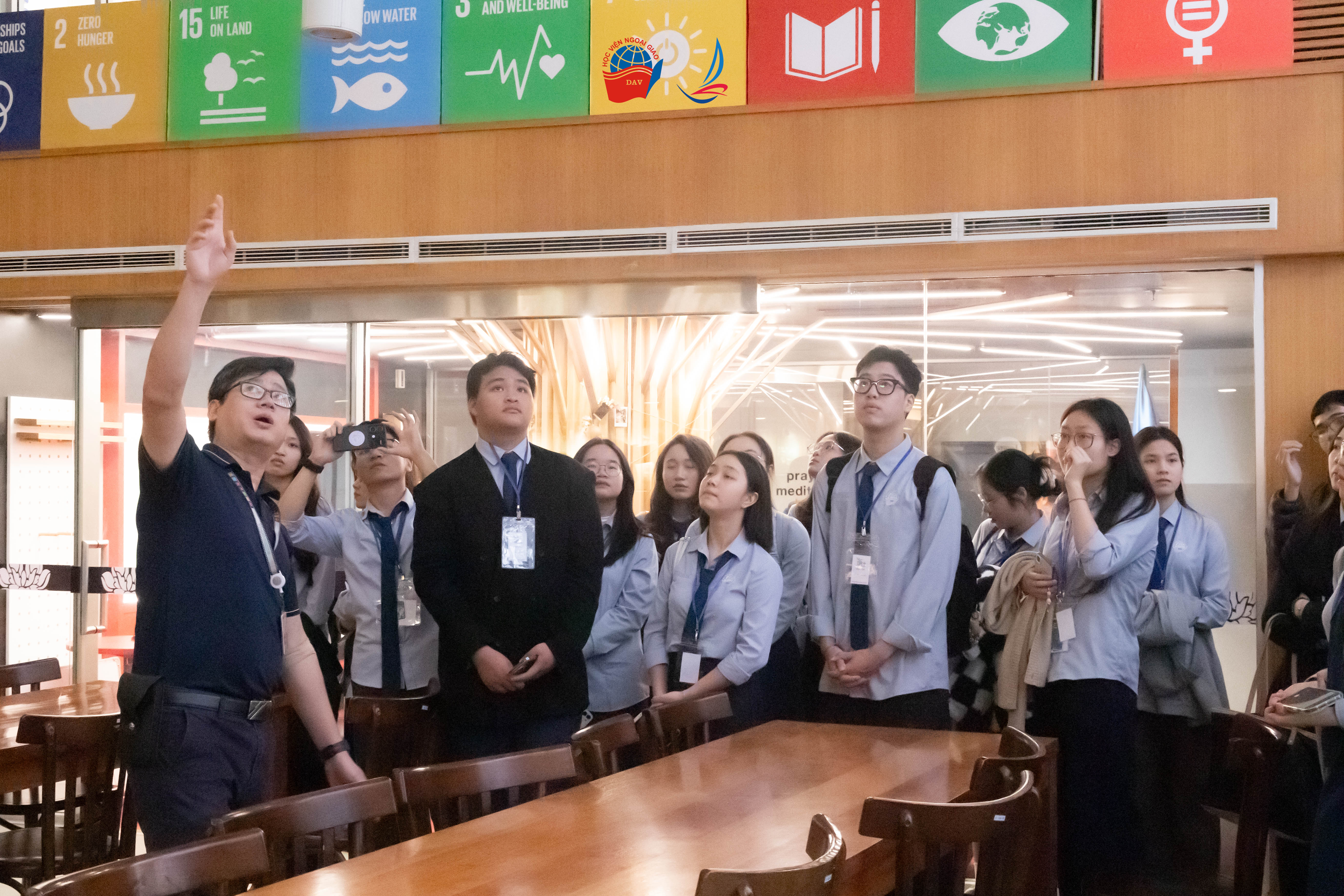 Là biểu tượng của hợp tác đa phương, phát triển bền vững tại Việt Nam, Ngôi nhà Xanh Liên hợp quốc được lựa chọn là điểm đến đầu tiên của hành trình DAJ Tour. Mở đầu buổi học, các học viên được trực tiếp trải nghiệm không gian làm việc đạt chuẩn quốc tế và tìm hiểu về văn hóa công sở, các tiêu chuẩn vận hành của một tòa nhà xanh. Thông qua các hoạt động quan sát và trao đổi rất ý nghĩa, sinh viên được truyền cảm hứng về một môi trường làm việc đa văn hóa, hiểu rõ hơn về cách thức các tổ chức quốc tế lồng ghép các mục tiêu phát triển bền vững vào đời sống hàng ngày.