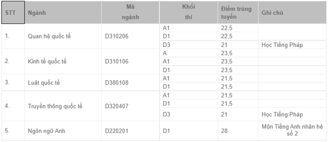 ĐIỂM TRÚNG TUYỂN HỆ ĐẠI HỌC CHÍNH QUY