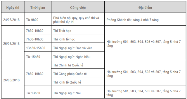 Lịch thi tuyển sinh Thạc sĩ năm 2018