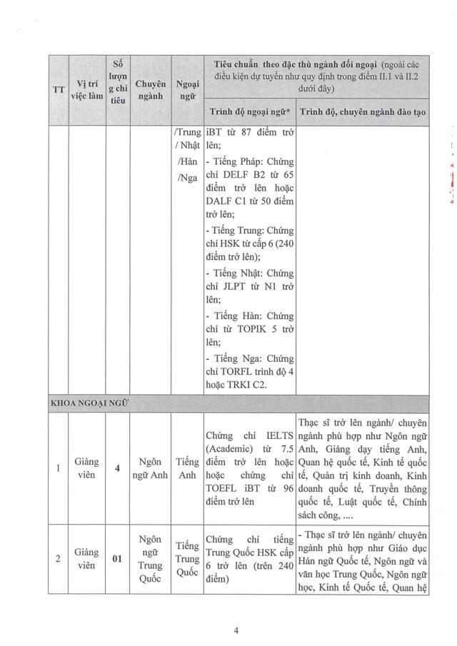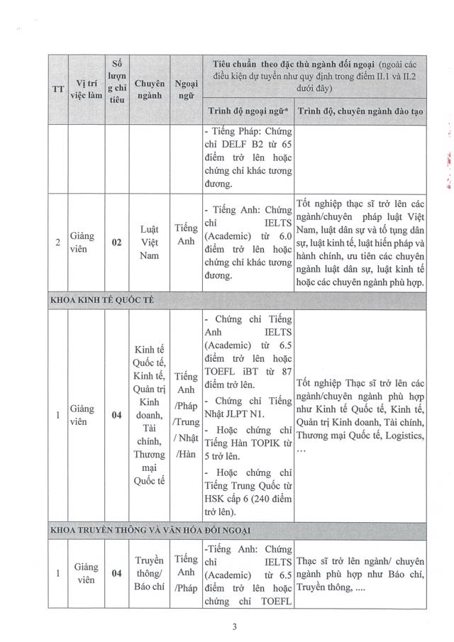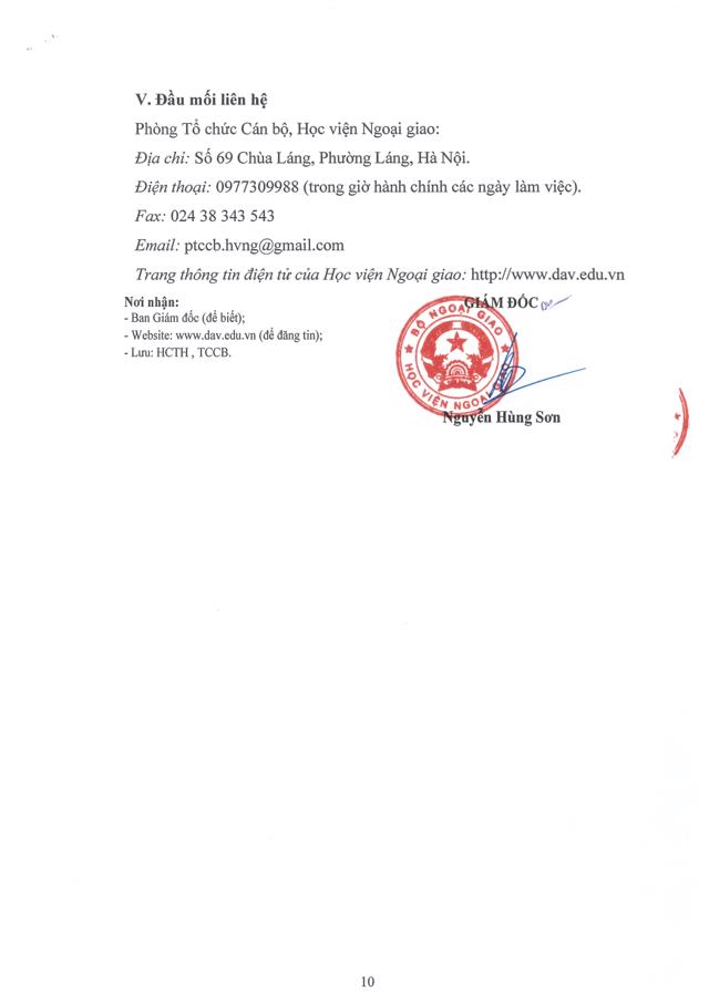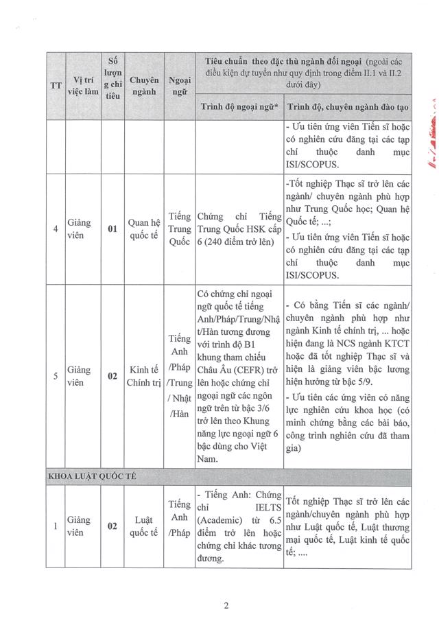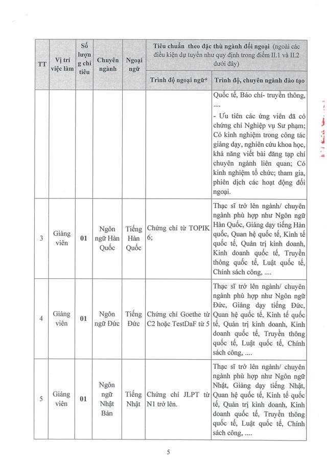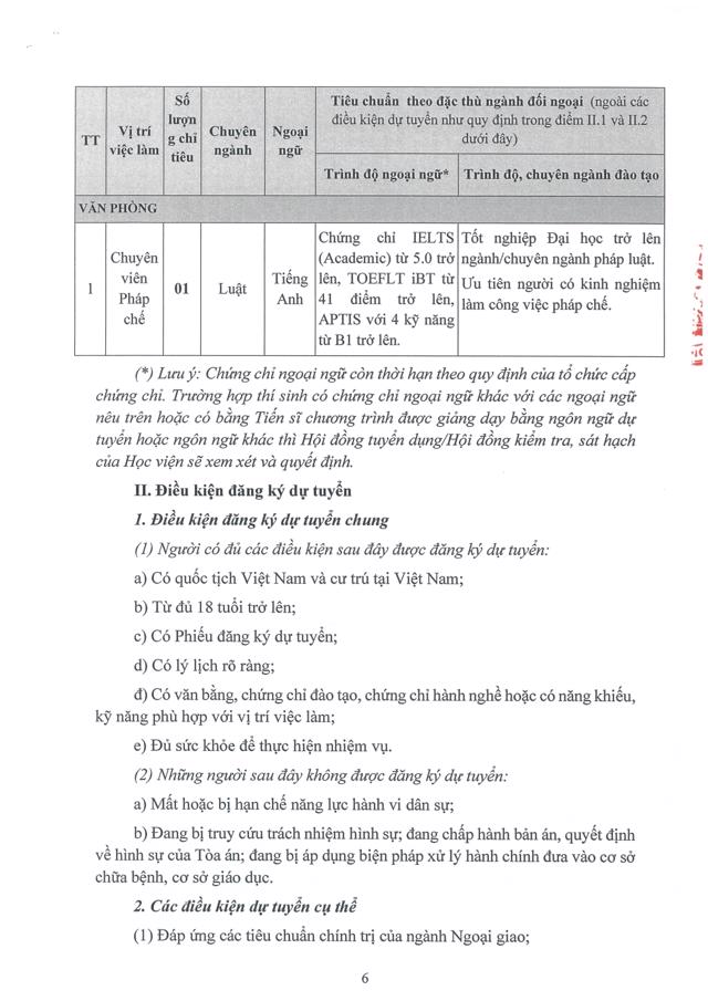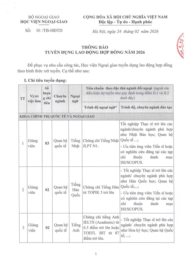 Sinh viênĐể phục vụ nhu cầu công tác, Học viện Ngoại giao cần tuyển dụng lao động hợp đồng theo hình thức xét tuyển, cụ thể như sau: