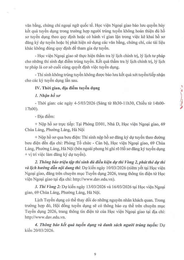 Hội đồng tuyển dụng lao động hợp đồng Học viện Ngoại giao 2026