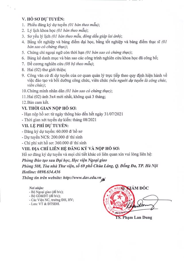 Quyết định về việc công nhận kết quả tuyển sinh đào tạo trình độ tiến sĩ chuyên ngành Quan hệ quốc tế năm 2023 22/12/2023