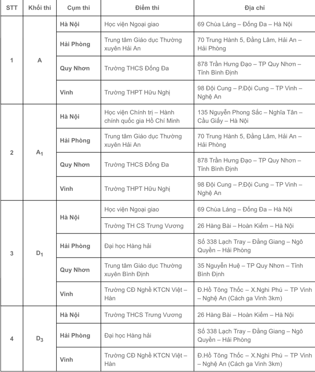 THÔNG BÁO VỀ CÁC ĐỊA ĐIỂM THI
